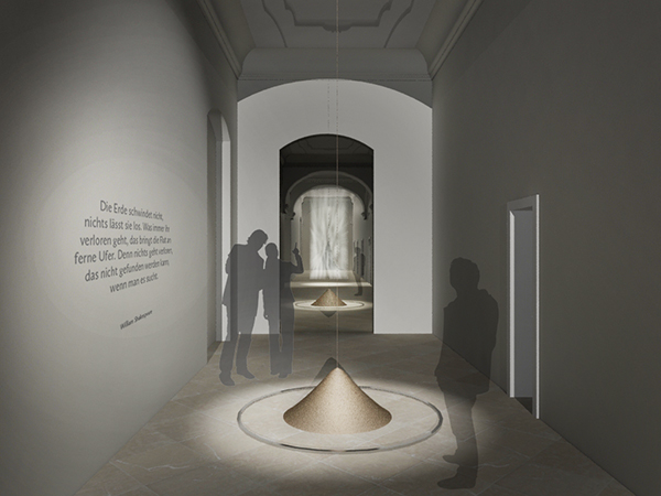 Das westliche Flurende wird von einer Sandinstallation eingenommmen.